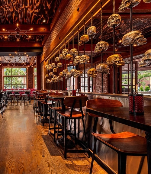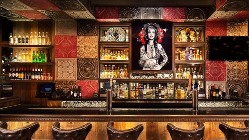 Detailed shelf & bar lighting highlights the artwork and structure throughout the project.